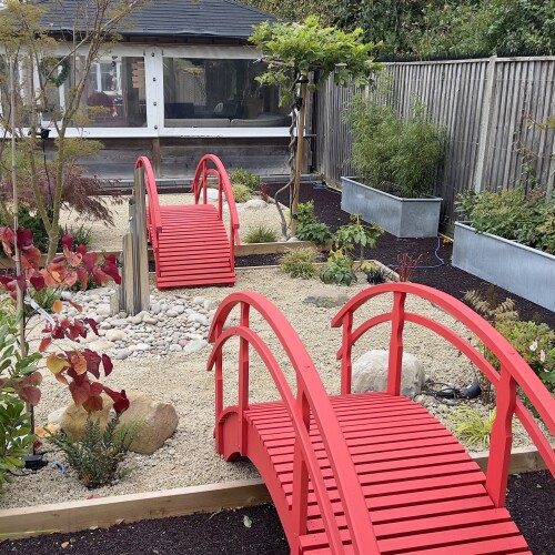 The brief from our client was to transform established border structures into a cohesive, Japanese inspired landscape that balances bold focal points with serene natural elements. The space was revitalised by integrating themed specimen trees and striking architectural features, creating a garden that feels both curated and tranquil.